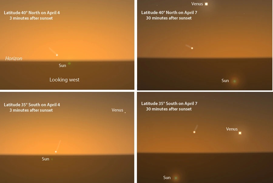 Најдобар период за набљудување би бил кратко околу 4 април и во втората половина на април, кога кометата ќе излезе ниско на западниот хоризонт по зајдисонце во вечерното небо. Најповолни услови се во Јужната полутопка, но ако е навистина блескава, би можела да се види и од Северната.Сегашните податоци покажуваат дека кометата е релативно голема (можеби до 2,4 км во пречник), но и понатаму слабо се засилува.